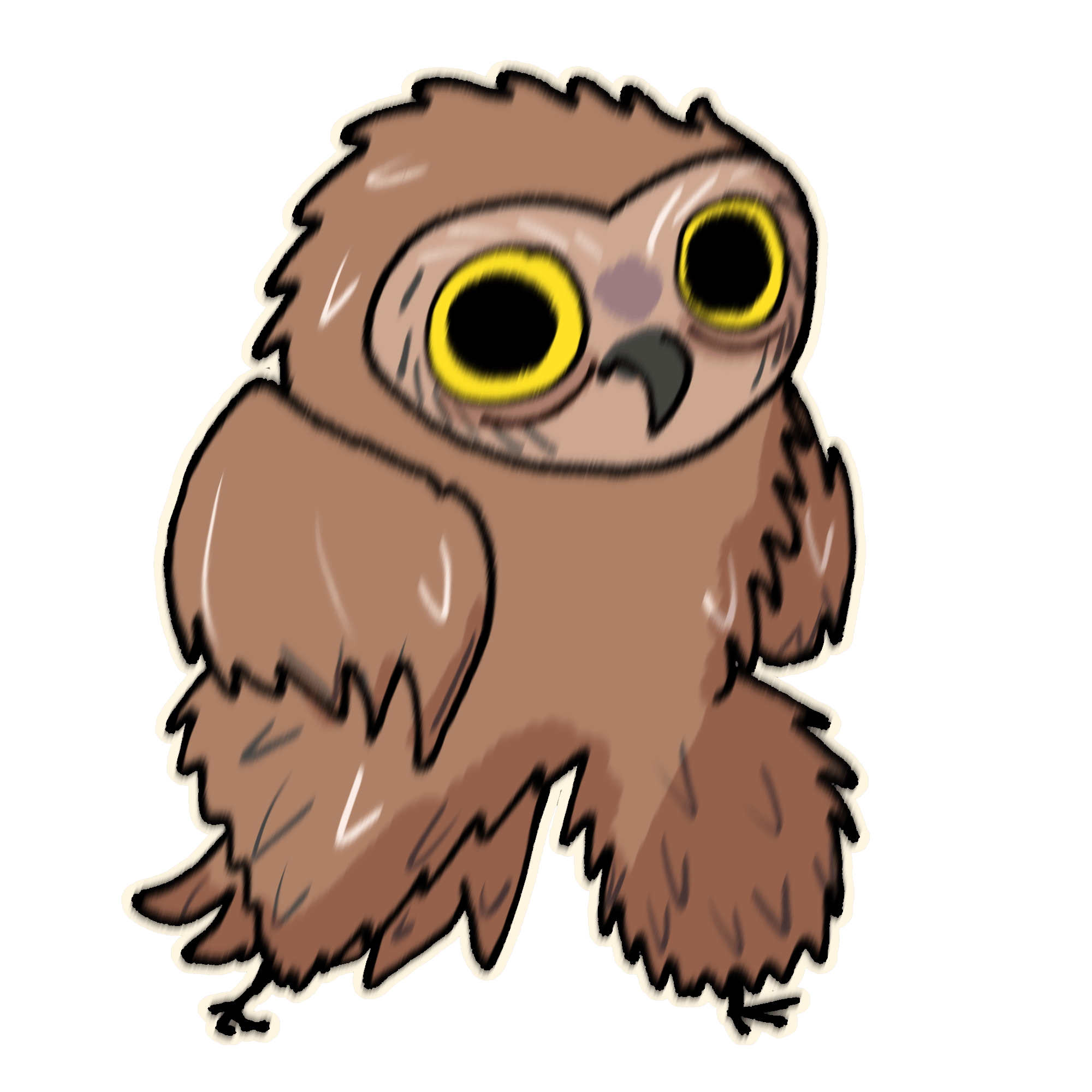 my name is ewwel pronounced any or all ways you can think of. me owl, just a lil guy.my time is spent watching in the dark, making sure that all is safe in the forest. watching streams and keeping everyone's dreams moving safely.always able, always listening for anyone that is willing to talk. playing games in my free time when im not standing on my tree, always watching.