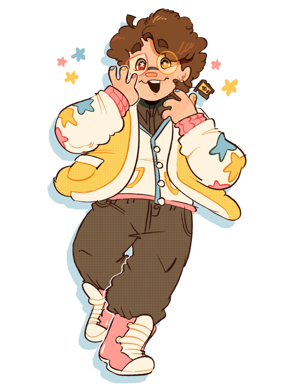 hi hello!!! i'm charlie beansprig, your favorite silly lil guy!! i'm a nonbinary transmasc variety streamer on twitch who only knows how to make peepee poopoo jokes and tell you you're loved!!! I also am a digital artist and make my own stickers at home with my rad dog hashbrown!!